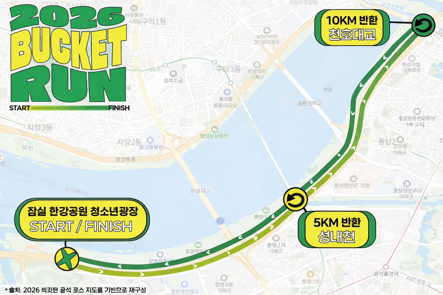 2026 버킷런은 러닝 커뮤니티 ‘런앤런’이 주최하는 참여형 러닝 이벤트로, 기록 경쟁뿐 아니라 즐기는 러닝 문화 확산을 목표로 운영되고 있습니다. 특히 접근성이 뛰어난 잠실 한강공원에서 개최되어 수도권 러너들에게 큰 인기를 얻고 있습니다.